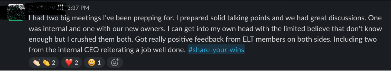 I recently coached one of our clients on this. Her company was recently acquired and she was anxious about how to navigate this transition while speaking up with her new executive leaders. Self-doubt and overthinking held her back in the past, and she didn't want this pattern to keep repeating itself. We nailed down strategic scripts to use, role-played them together and ensured she was clear in her delivery. She crushed both meetings and got immediate positive feedback from her leadership team.