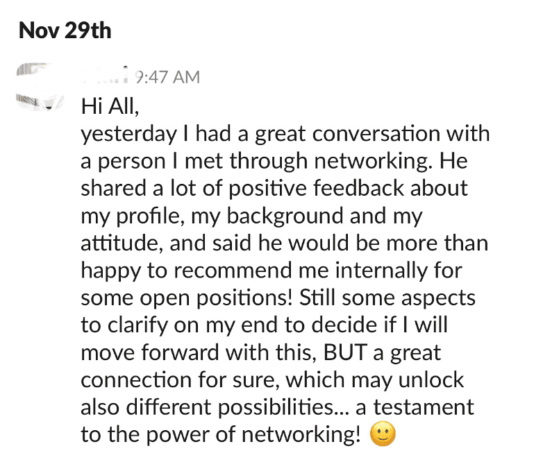 This is exactly what I coach my clients to do that opens up proactive opportunities without needing to rely on online applications. For one of my clients last week, she solidified an internal advocate at her top tech company of choice. Through our coaching support and outreach templates, her connection has already offered to make multiple warm introductions for internal roles on her behalf.