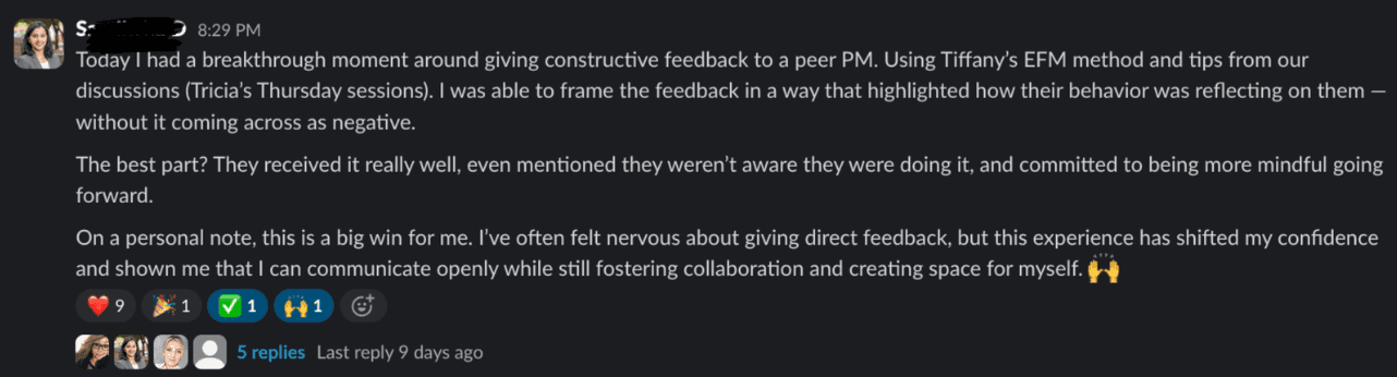 This is an area we supported one of our clients on recently to provide constructive feedback on a situation she had been nervous about for weeks. She did it anyways and it went better than she could have expected. This was a huge win for her as she would have put off these conversations entirely in the past.